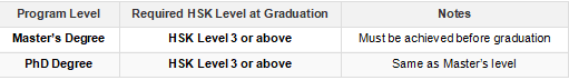International students in English-medium programs must possess professional work capability in English and reach at least HSK Level 3 in Chinese by graduation.