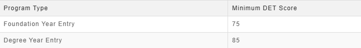 Could you please confirm if the DET is accepted for admission, and if so, what is the minimum required score?