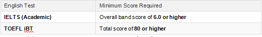 IELTS (International English Language Testing System): Minimum overall band score of 6.0