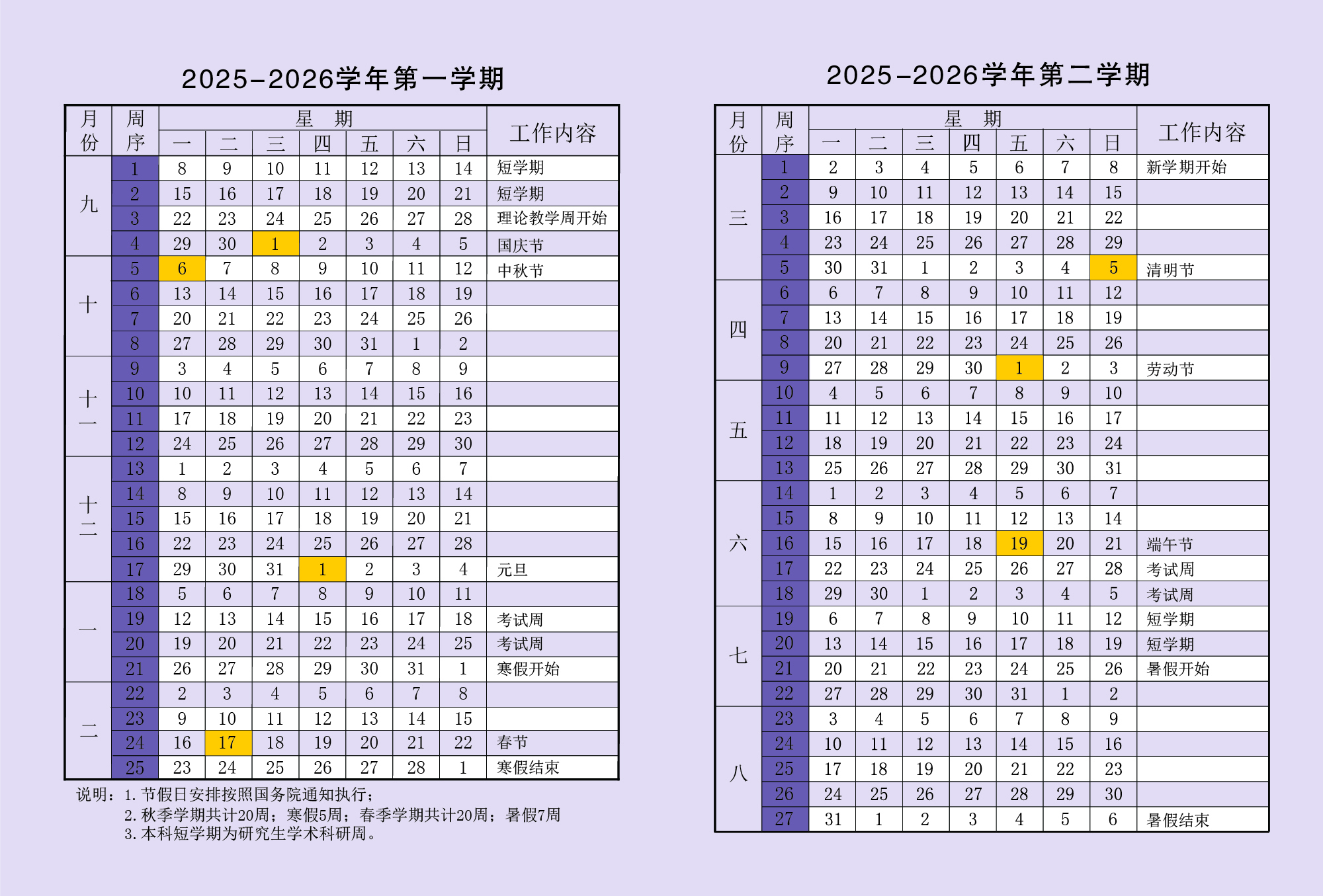 2025-2026 Academic Year, First Semester Key Dates: